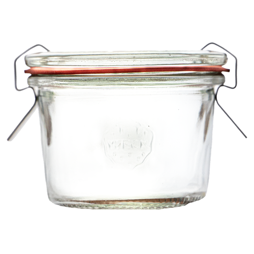 Wash and sterilise your Weck jar, lid and sealing ring. Fill with your prepared fruit, vegetables or recipe, leaving the recommended headspace.