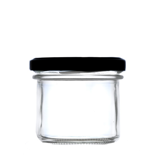 This wholesale jam jar comes with a heat-sealable lid that has a vinegar-proof lining, available in gold or black.