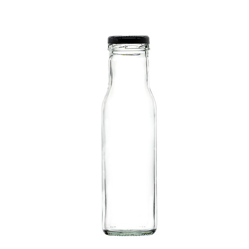 This round glass bottle holds a capacity of 250ml and make perfect sauce bottles