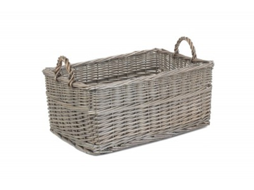 Wicker, Willow Woven, Medium, Shallow Antique Wash Storage Basket, L520mm x W320mm x H280mm