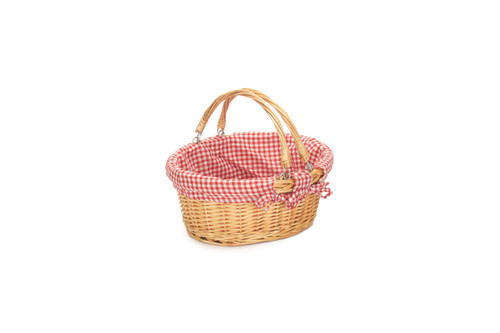 Wicker, Willow Woven, Small Swing Handled Shopping Basket with Red and White Checked Lining, L330mm x 280mm x 180mm